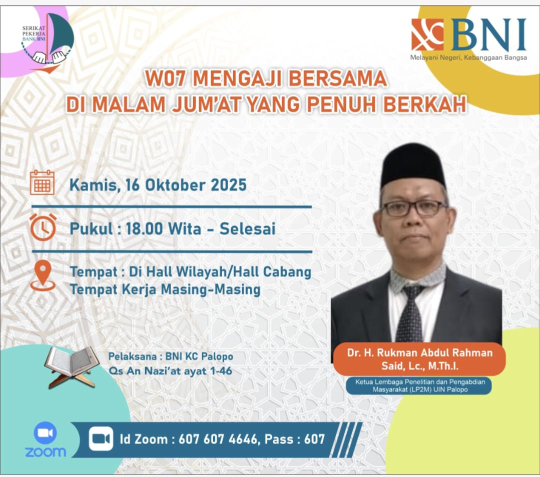Palopo, (14/09/2025)- Dr. Amrullah Harun, S.Th.I., M.Hum yang merupakan dosen Program Studi Ilmu Al-Qur’an dan Tafsir melakukan inisiatif dalam bentuk pengabdian masyarakat dengan rutin mengisi kajian keagamaan. Kajian ini terbuka untuk umum (muslimin dan muslimat), mengangkat tema sentral mengenai “tata cara sholat” sebagai pondasi utama ibadah sehari-hari.